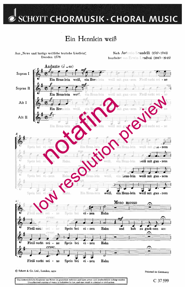 Ein Hennlein weiss (aus "Newe und lustige weltliche teutsche Liedlein")