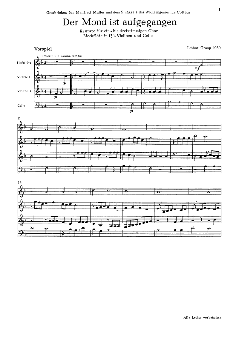 Der Mond ist aufgegangen (CoroSAM; Clfl f1; 2 violini; Vcl), partitura