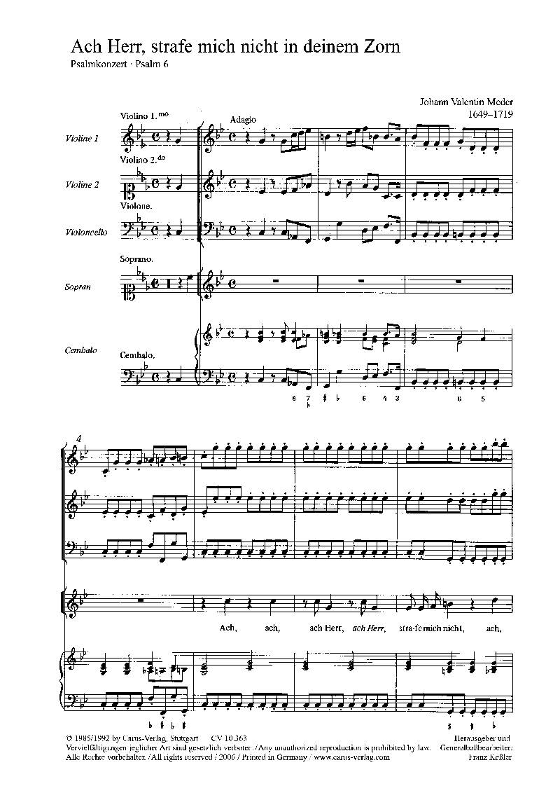 Ach Herr, strafe mich nicht (VoSoS; 2 violini; Vcl; clavicembalo), partitura