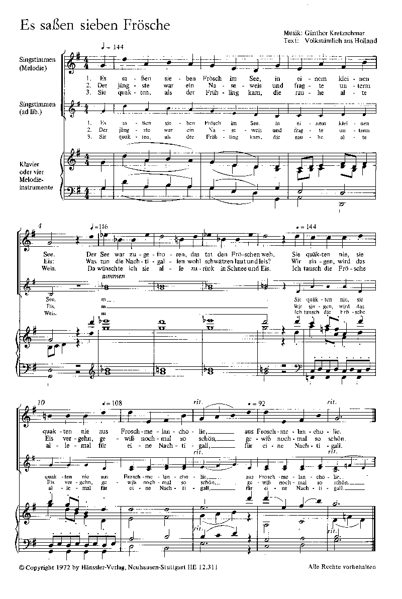 Kretzschmar: Es sassen sieben Frösch; Hört die traurige Ballade; Ich steh im Bistum Fulda