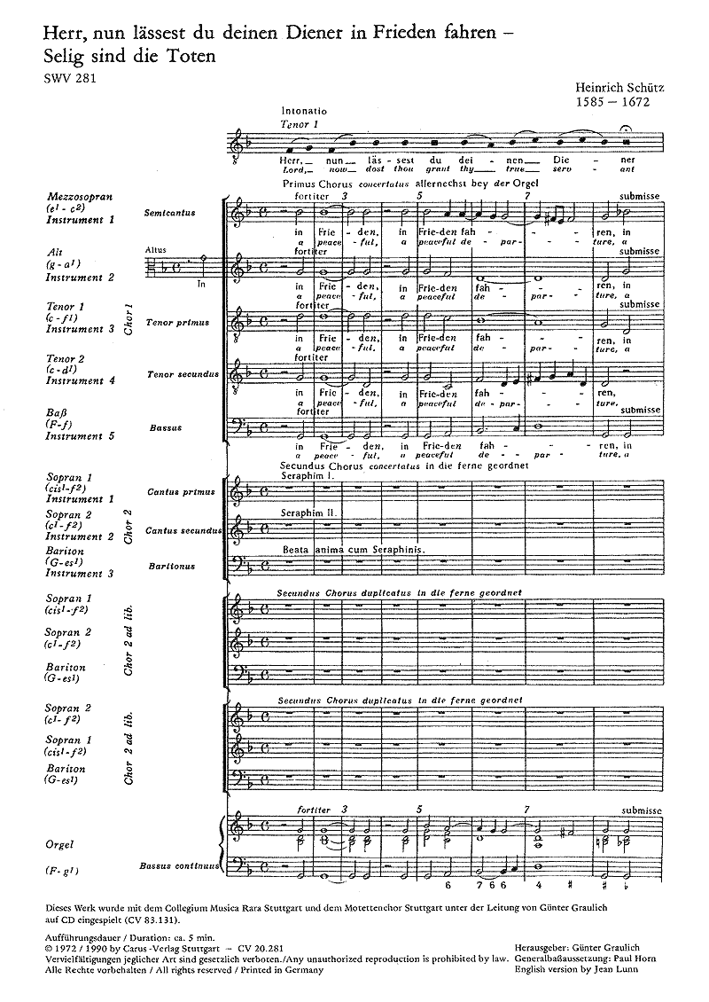 Musikalische Exequien III, Chor 1; 2. Instrumentalstimme
