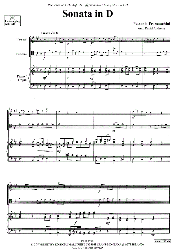 Sonata in D - Esempio di spartiti