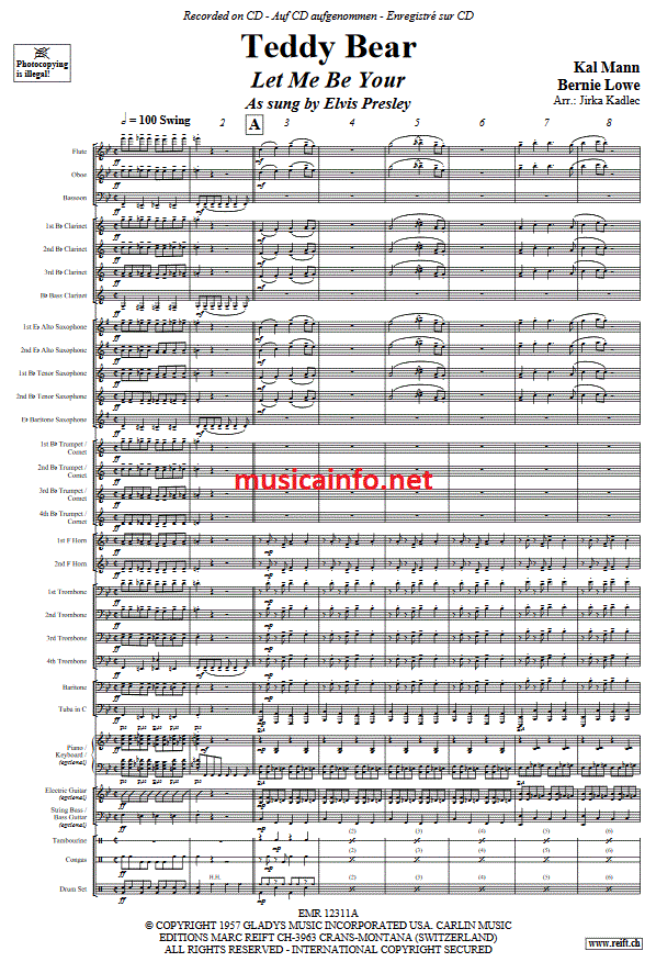 Teddy Bear - clicca qui Teddy Bear (orchestra di strumenti a faito; o; Fanfarenorchester), partitura e parti