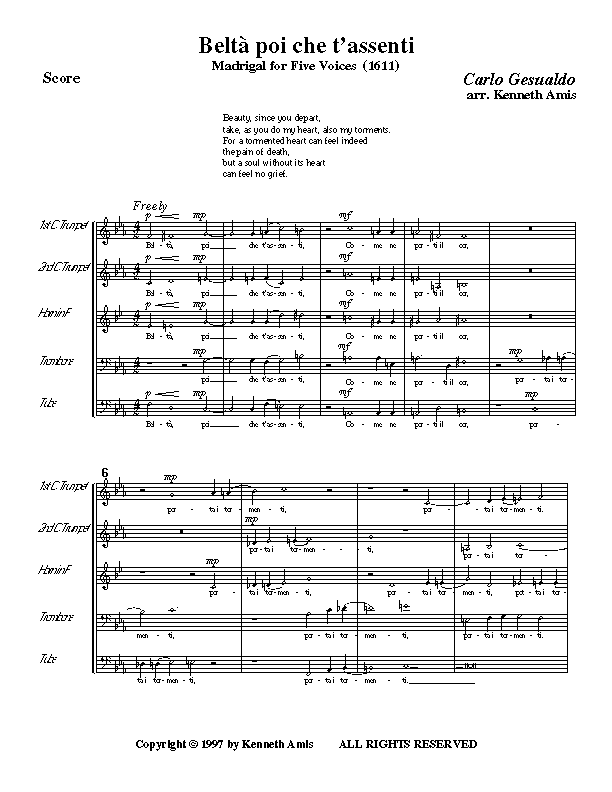 Belta poi che t'assenti - Esempio di spartiti