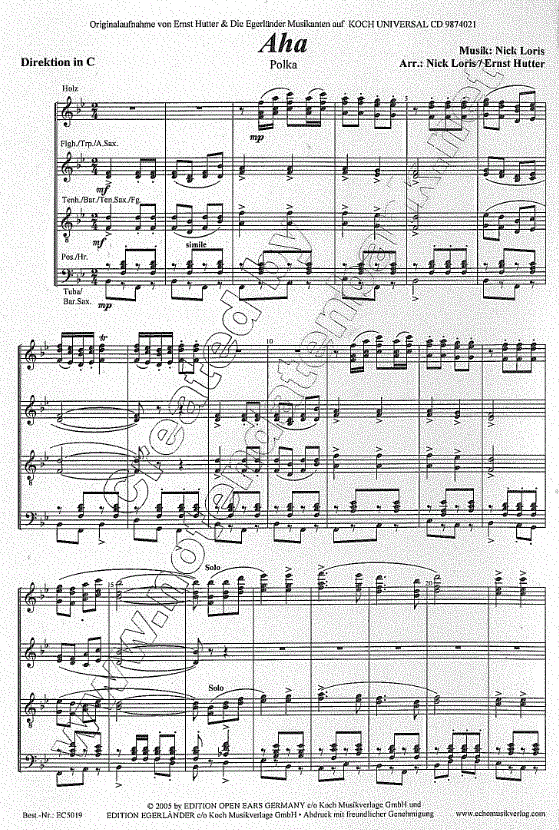 Aha Polka - clicca qui Aha Polka (orchestra di strumenti a faito), Particelle e set di parti strumentali