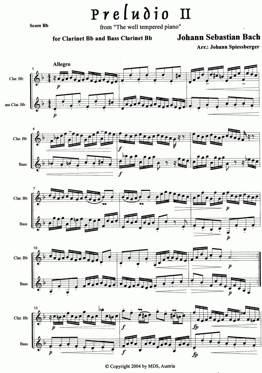 Preludio #2 (from 'The well-tempered piano'/aus 'Das Wohltemperierte Klavier') - Esempio di spartiti