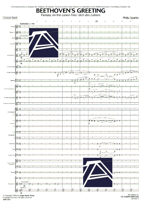 Ulteriori informazioni / contenuti La Band of Les Voltigeurs de Québec, un reggimento di fanteria delle forze canadesi, ha commissionato due brani al compositore Philip Sparke per un concerto e relativa uscita in CD; si trattava di una suite di canzoni popolari del Québec Sounds of the Saint Lawrence, e questa fantasia, basata sul canone di Beethoven: Freu dich des Lebens.