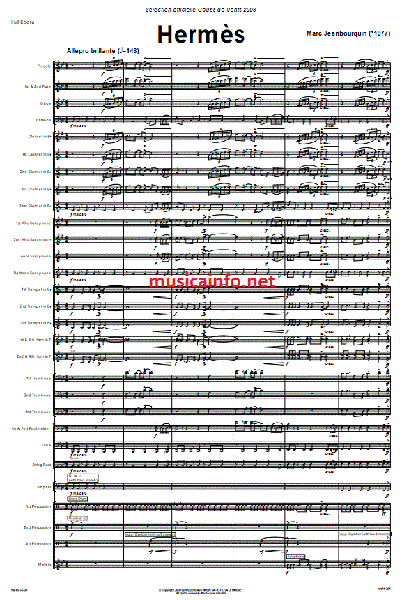 Ulteriori informazioni / contenuti Nella mitologia greca, Hermes ha diversi significati. Marc Jeanbourquin ha trasformato i vari compiti di questa figura leggendaria in un'opera convincente per orchestra di fiati. Nel primo movimento, Hermes appare come figlio di Zeus e messaggero degli dei, nella seconda parte dal suono misterioso come portatore di anime, e in contrasto come il dio dei ladri nel terzo movimento.