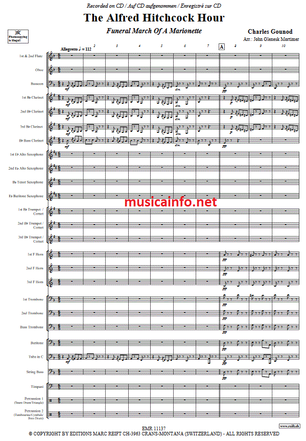 Alfred Hitchcock Hour, The (Funeral March Of A Marionette) - clicca qui Alfred Hitchcock Hour, The (Funeral March Of A Marionette) (orchestra di strumenti a faito; Fanfarenorchester), partitura