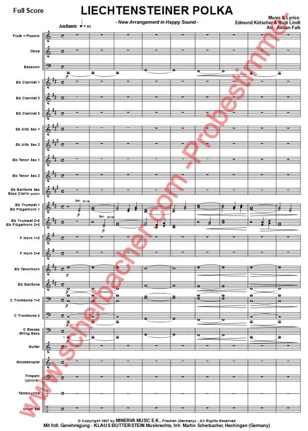 Liechtensteiner Polka (Im Happy Sound) - clicca qui Liechtensteiner Polka (Im Happy Sound) (orchestra di strumenti a faito), partitura e parti