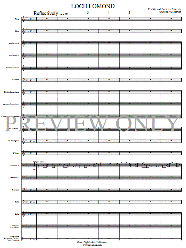 Ulteriori informazioni / contenuti Questa famosa canzone scozzese è un pezzo meraviglioso per sviluppare non solo l'esecuzione solistica da parte di diverse sezioni, ma anche un suono d'insieme completo. Si apre con la nebbia che si alza sulla montagna, con un trombone solitario che suona l'ammaliante melodia.