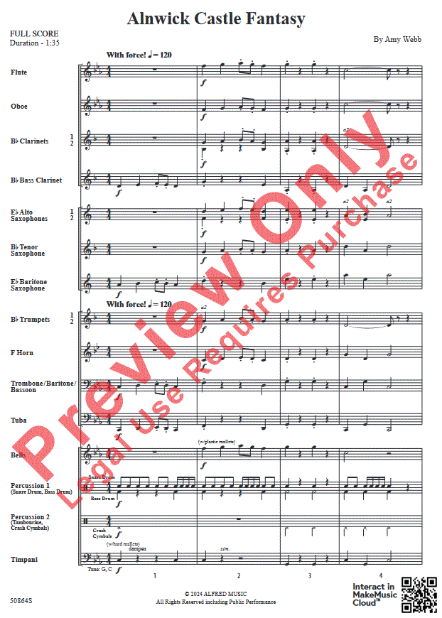 Ulteriori informazioni / contenuti Composta per rappresentare la regalità, lo splendore e la sfarzosità della nobiltà medievale, "Alnwick Castle Fantasy", di Amy Webb, offre musica drammatica e dal suono maturo che insegna le note della scala di Do minore da concerto. Pochissimi accidenti sono sparsi nel brano e, poiché gli intervalli sono comodi per gli studenti a questo livello, possono concentrarsi su dinamiche, articolazioni, equilibrio e fusione. Celebra il castello presente nei film di Harry Potter!