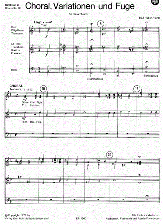 Ulteriori informazioni / contenuti "Chorale, Variazioni e Fuga" di Paul Huber è un'opera affascinante e stimolante che celebra la diversità e la ricchezza della tradizione della musica classica. Fondendo abilmente forme tradizionali con elementi armonici e melodici moderni, il pezzo crea un paesaggio sonoro ricco e ricco di sfumature che sfida e delizia il pubblico in egual misura.