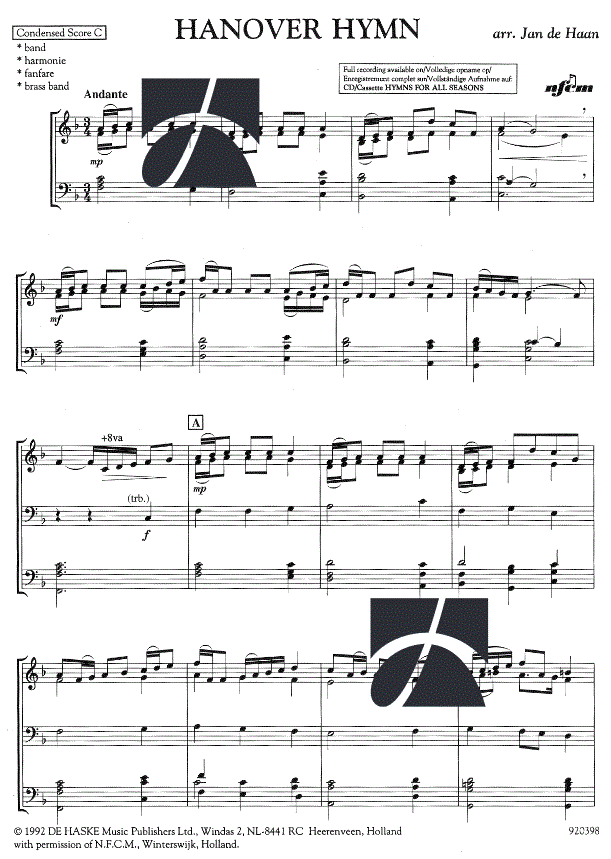 Hanover Hymn - clicca qui Hanover Hymn (orchestra di strumenti a faito; Fanfarenorchester), partitura
