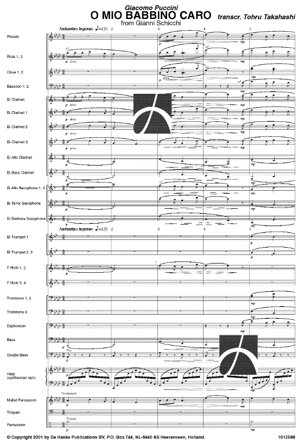 "O Mio Babbino Caro" is one of Puccini's most famous opera arias. It comes from the opera Gianni Schicchi, the third part of an opera trilogy. The harp, which plays a central role in the original, was integrated into the vibraphone part by Tohru Takahashi in his arrangement for wind orchestra. The Japanese composer's excellent arrangement, which offers many instrumentation options, is an ideal encore number!