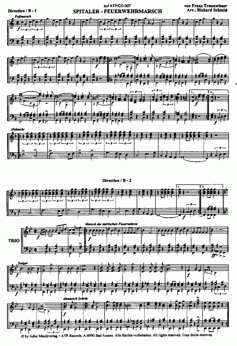 Spitaler-Feuerwehrmarsch - clicca qui Spitaler-Feuerwehrmarsch (orchestra di strumenti a faito), Particelle e set di parti strumentali